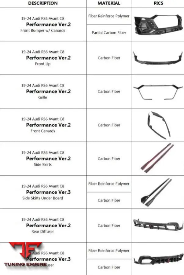 AUDI RS6 AVANT C8 CARBON FIBER PARTS 2019-2024